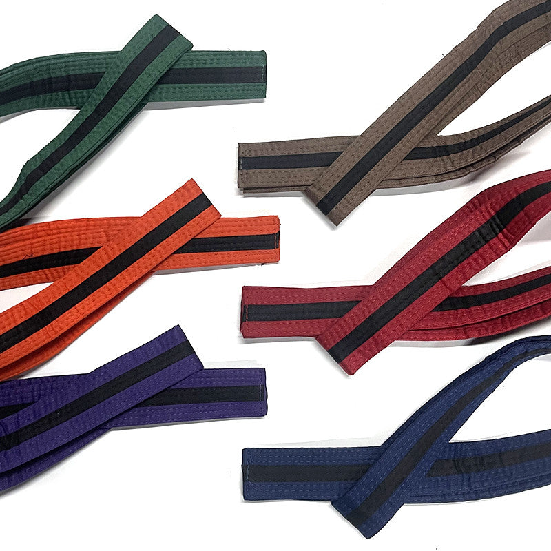 Double Wrap Martial Arts Rank Belt for karate, taekwondo and jiu jitsu. Made with high quality materials to keep the colors vibrant and consistent. Double wrap around for an authentic martial arts feel. 1.75 inches wide with 9 rows of stitching.